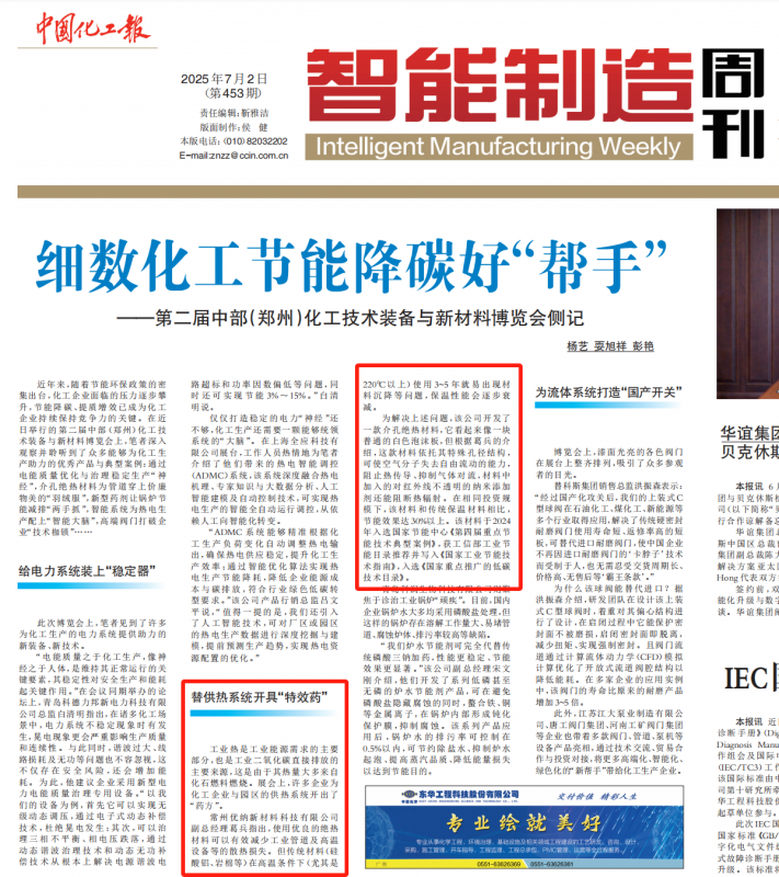 《中國化工報》:優納新材替供熱系統開具“特效藥”